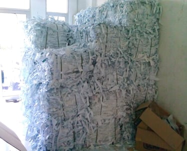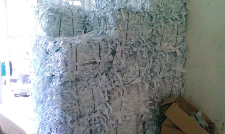 Kertas yang telah dihancurkan dengan rapi, siap untuk didaur ulang dan mengurangi limbah.